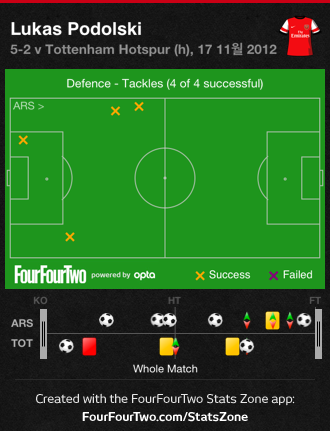포돌스키 태클 4/4 100% 1위.